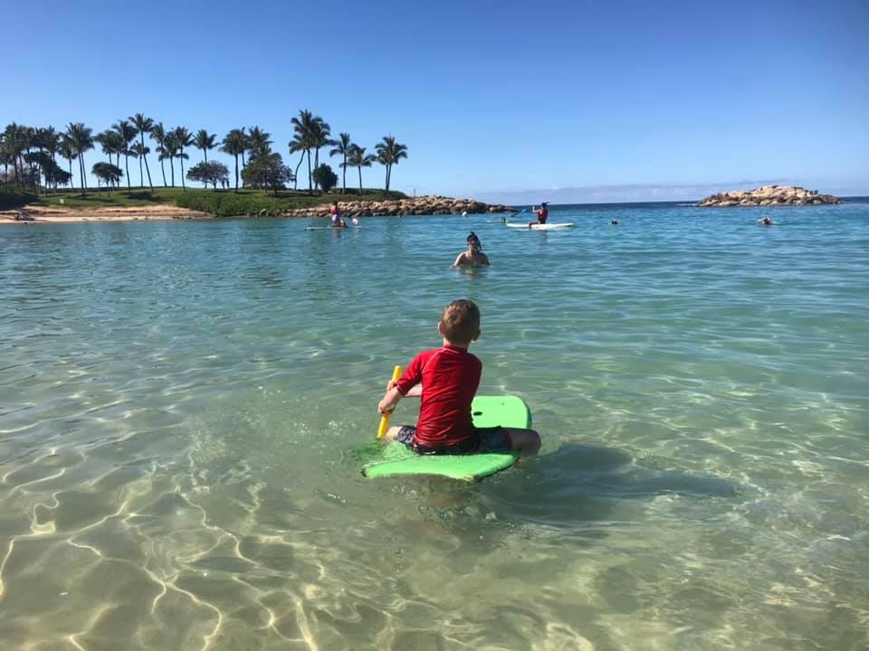 Aulani Disney Resort Hawaii has everything I enjoy on a vacation: a beautiful beach including boogie boards and sand toys available, a really fun pool complex including a tube slide into a lazy river, a child’s splash area, an infinity pool, and both family and adult-only hot tubs.